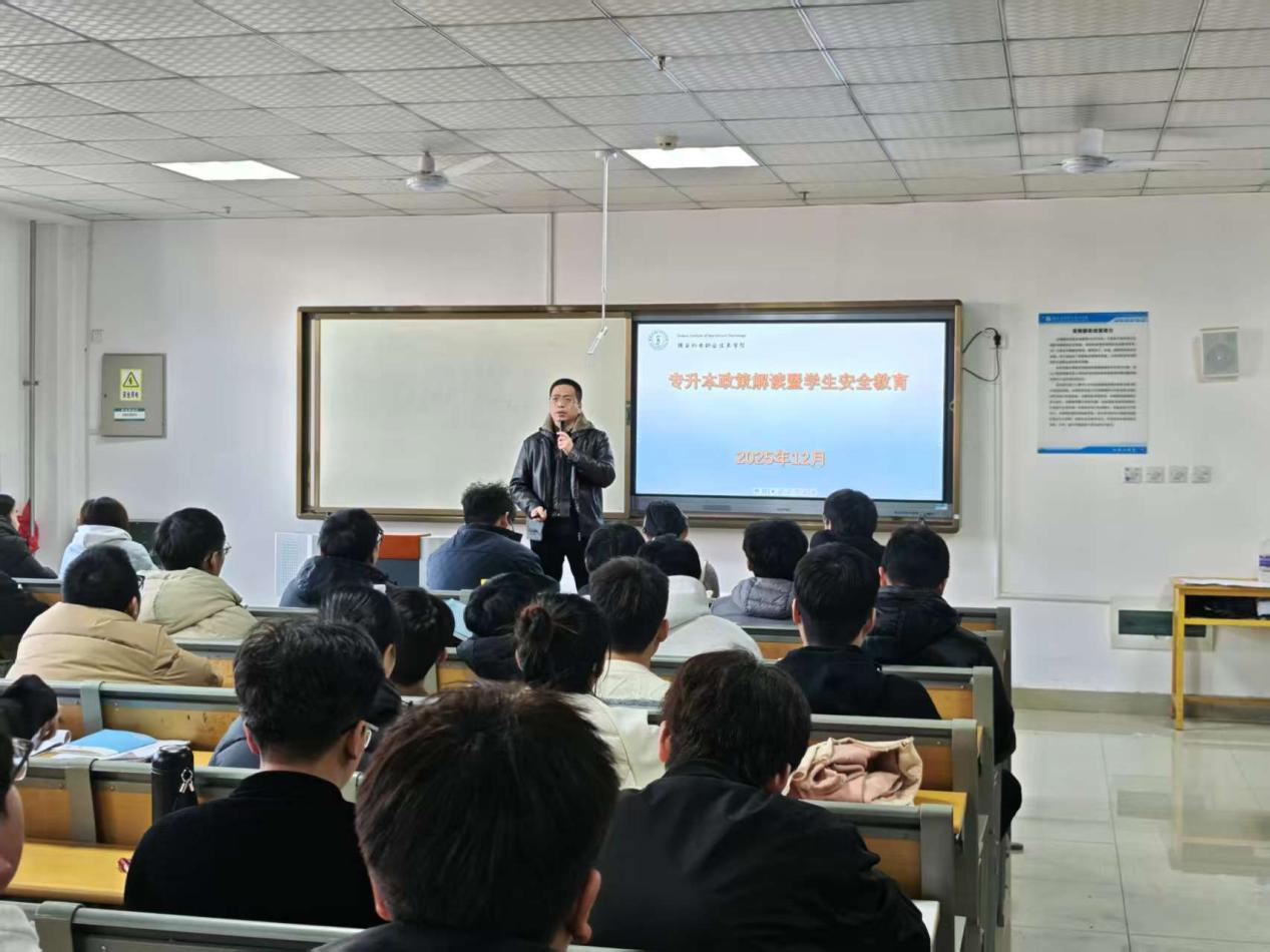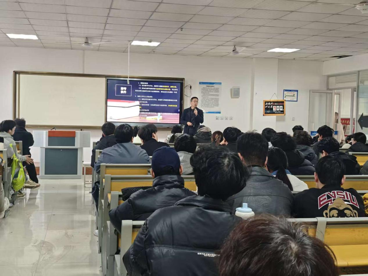 会上,继续教育与培训学院综合科科长侯京贺详细解读了陕西省统招专升本的报考条件、报考流程等政策,并结合我校2025届考生上线成绩和录取数据,深入分析备考策略,帮助学生制定科学复习计划,指导学生科学备考。同时,会议聚焦学生安全,涵盖交通安全、饮食安全、取暖安全、住宿安全、甲流防控、防电信诈骗、意外伤害及心理调适等八个方面内容,强调“安全是成长基石”,提升学生自我保护意识和突发意外处置能力。
